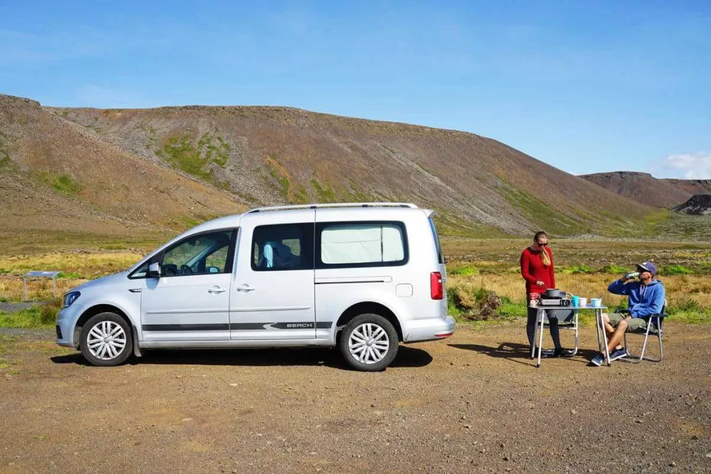 The VW Caddy Camper (Automatic) is designed for those who want a smooth, car-like driving experience while maintaining the freedom of a campervan. It is arguably the easiest camper to drive in our fleet—compact enough to park in any standard space at busy sites like Skógafoss, yet fully equipped with everything you need to eat and sleep comfortably.