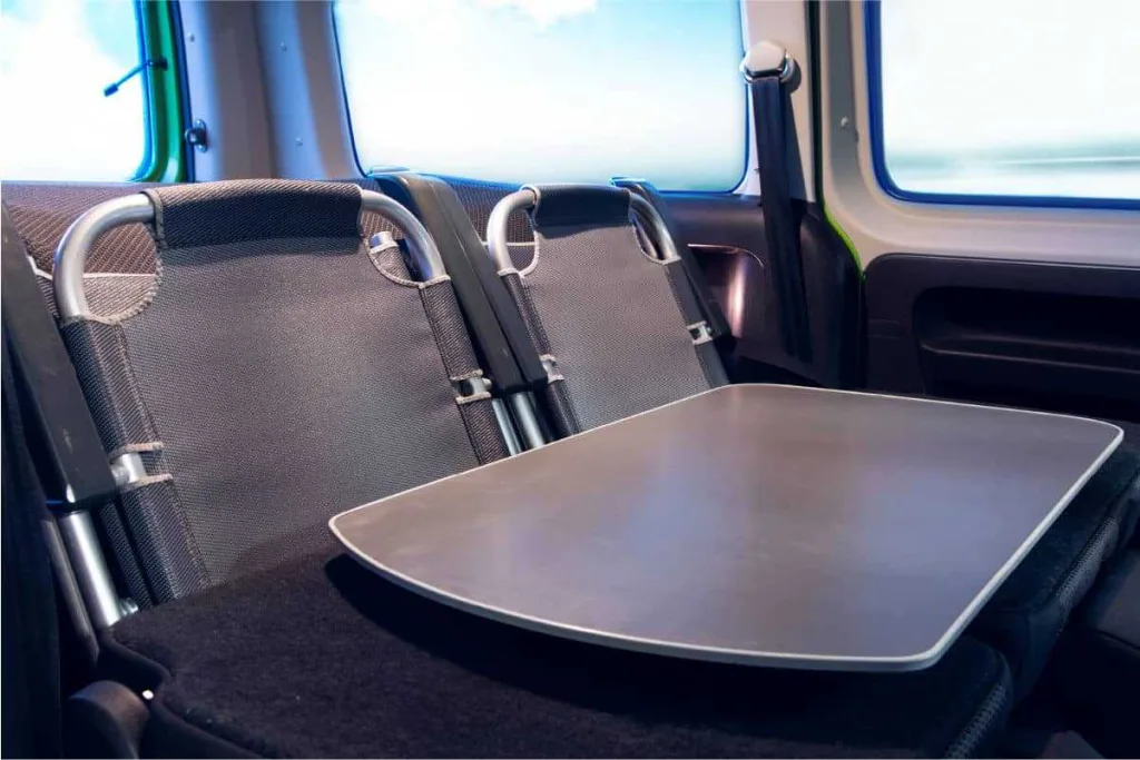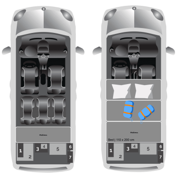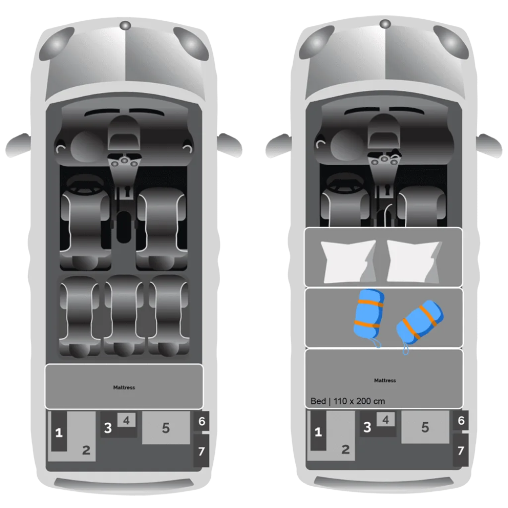 - Cozy Sleeping: The rear features a fold-out double bed (approx. 110 x 200 cm) with a high-quality mattress, providing a flat and warm sleeping surface