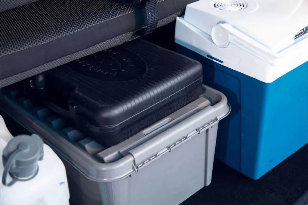 - Efficient Living: The interior is intelligently designed, with a built-in kitchenette and ample storage for two large suitcases and your day packs