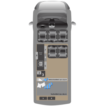 - Smart Storage: Despite its small footprint, the Caddy features clever storage pockets and space under the bed for two suitcases and your hiking gear.